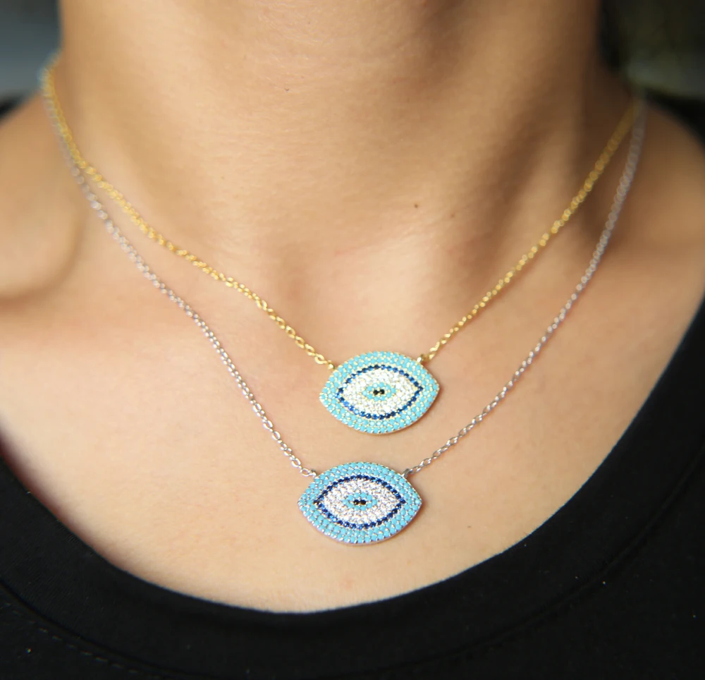 Imagina su brillo sutil sobre una camisa blanca en la oficina, con un blazer para una reunión importante o realzando un vestido negro en una cena especial. Su paleta azul confianza y metal en plata minimalista combina con vaqueros y camiseta, vestidos fluidos o looks de noche. Para la mujer que busca fuerza y elegancia en una sola pieza, este amuleto es una elección segura. El ojo turco tiene tradición de generaciones, y el azul se elige cuando tu intención es protegerte y encontrar serenidad.
